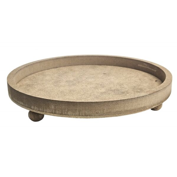 Bandeja redonda de DM con 3 patas de bola, lista para pintar o decorar, de 24 centimetros.