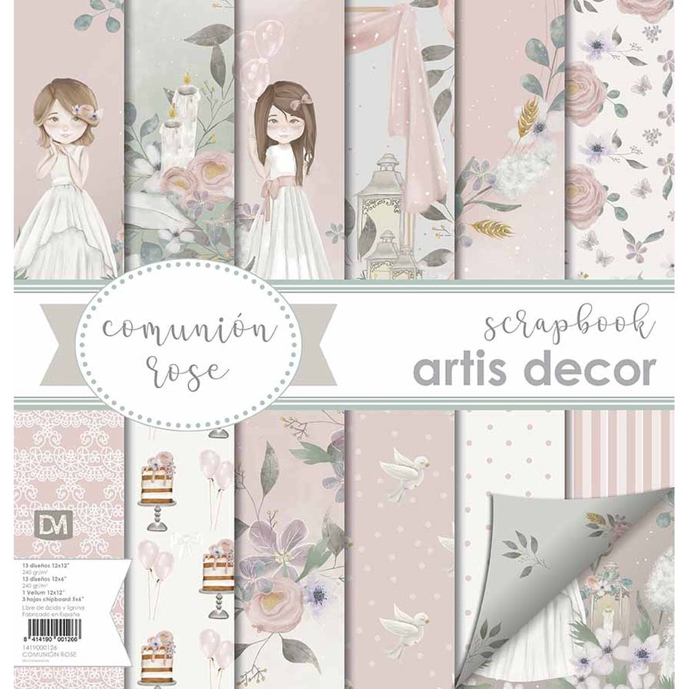 Block de papeles artis decor compuesta por 8 hojas sueltas con diseños impresos a doble cara en tamaño 12×12′ (30,5×30,5cm) y un bloc de 8 hojas también con diseños por ambas caras, en un tamaño de 6×12′ (15×30,5cm) pensado para complementar a la colección grande. Con estos papeles se puede hacer álbumes, layouts, libros de firmas, y decoración . Gramaje: 190g Tamaño: 12×12′ (30,5×30,5cm) 6×12′ (15×30,5cm) Papeles diseñados y fabricados en España, libres de ácido y lignina.