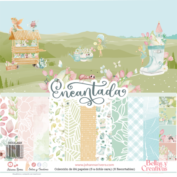 Cantidad: 21 papeles de 190 gramos estampados a una cara tamaño 12×12 diseñados por Johanna Rivero de bellas y creativas.