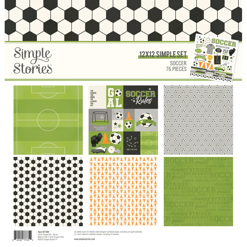 Incluye 6 papeles estampados a doble cara de 30 x 30 cm. y 1 combo sticker de 30 x 30. de una colección de fútbol.