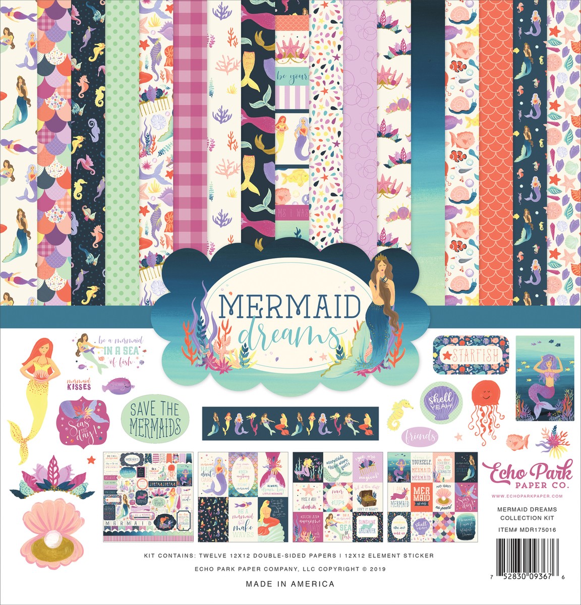 COLECCION DE 12 PAPELES A DOBLE CARA DE 30X30 CON STICKERS Y TARJETAS INSPIRADA EN EL MUNDO MARINO FANTASTICO, SIRENAS, TESOROS ETC. IDEAL PARA SCRAPBOOK