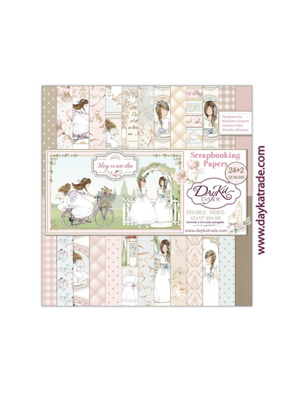 Block de comunión niña compuesto de 24 + 2 diseños papel a doble cara, dos diseños de cada hoja 30×30 224gr.
