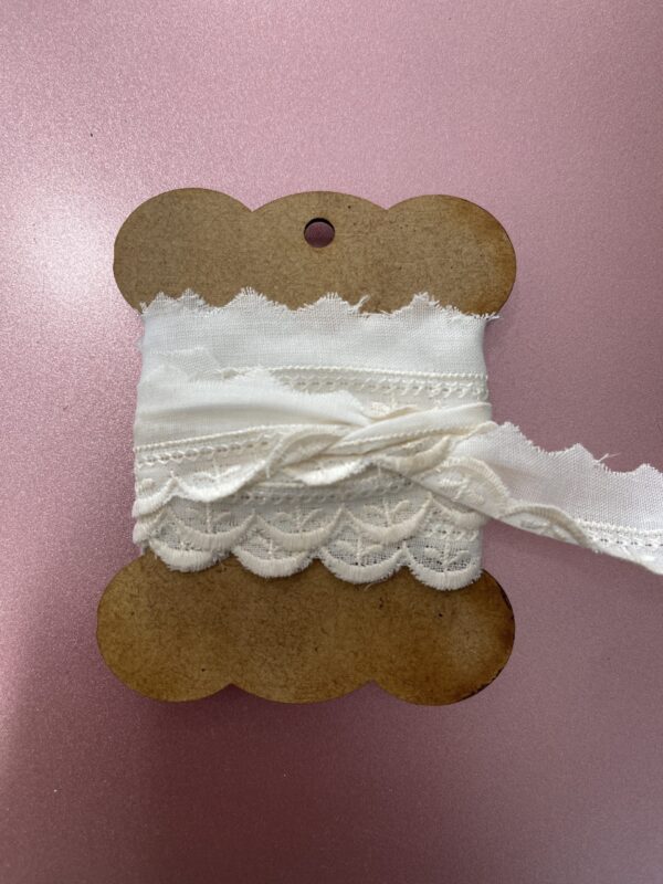 BOBINA QUE CONTIENE UN METRO DE PUNTILLA DE ONDA IDEALES PARA TRABAJOS DE SCRAPBOOKING.
