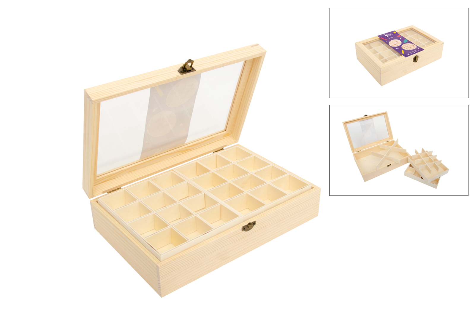 Caja de madera con 24 divisorios 30x20x8