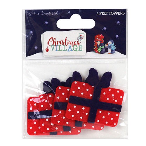 TOPPERS DE FIELTRO CON FORMA DE CAJAS DE REGALO NAVIDEÑAS DE LA COLECCION CHRISTMAS VILLAGE.