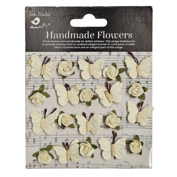 Flores de papel hechas a mano de la marca Little Birdie, ideales para tus trabajos de manualidades, scrapbook, mixmedia, tarjetería, bisutería, decoración….