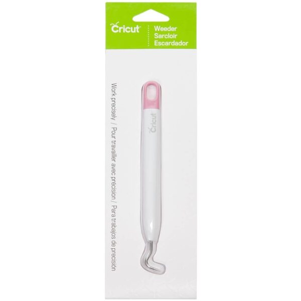 La herramienta Weeder es perfecta para eliminar pequeños cortes, incluidos los negativos de vinilo y planchar de la hoja de soporte, o para sacar pequeños negativos de una imagen de cartulina cortada. Recoja piezas pequeñas listas para adherir con la punta para aplicarlas fácilmente a los proyectos, use la sección curva de la herramienta para sujetar cortes intrincados en la hoja portadora mientras quita las piezas negativas circundantes, o perfore pequeños agujeros con la punta. Especialmente diseñado para eliminar fácilmente los cortes pequeños, ayuda a separar los cortes de vinilo y de plancha del forro.