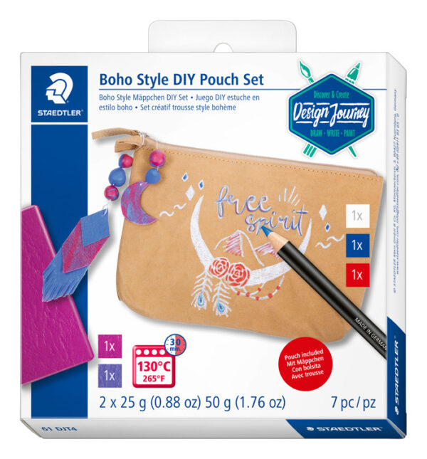 - Contenido del kit: 3 lápices de colores Lumocolor permanentes en blanco, rojo y azul para dibujar y escribir a mano en la bolsa de papel kraft, 2 bloques de medio bloque Fimo efecto cuero en colores frutos rojos e índigo para crear colgantes que se pueden fijar a la bolsa, 1 bolsa de papel kraft, 1 banda de goma