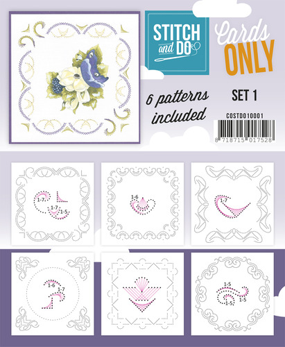 Este conjunto de cartas solamente contiene 6 cartas  diferentes de los conjuntos Stich y Do. Con este set nunca tienes muchas posibilidades. Se puede combinar con hilo de bordar, cartulina y motivos 3D en sus colores favoritos. Plantillas incluidas.