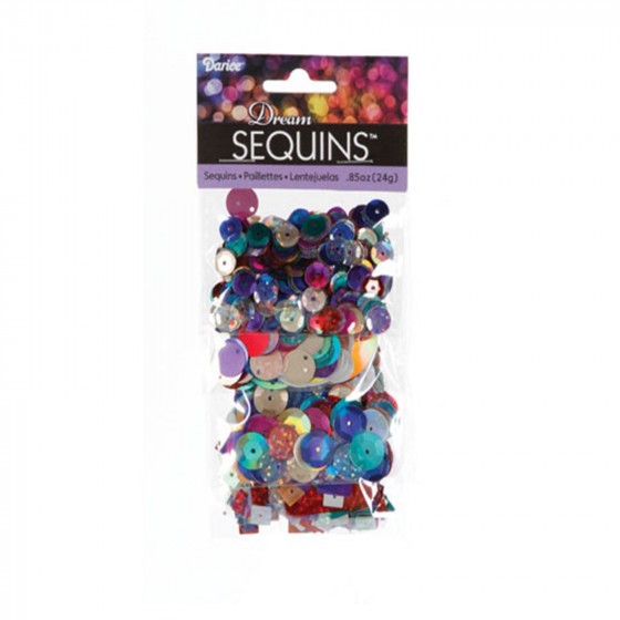PAQUETE DE 24 GRAMOS SEQUINS SURTIDOS FORMAS Y COLORES