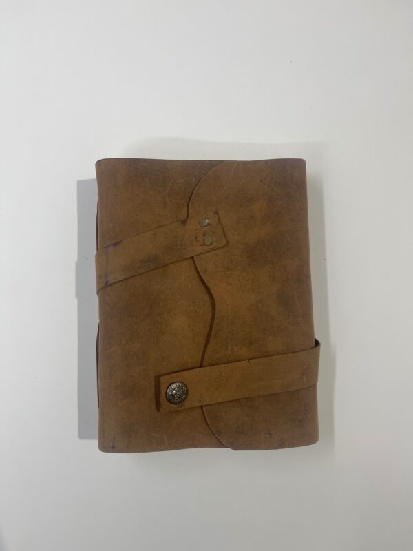 Libro Artesanal realizado con piel Marron efecto ante, lleva papel artesanal de algodón 100% color beige, tamaño 20*15 cm ideal para realizar trabajos con acuarela y journal. su cierre es con tira de piel del mismo tono que el libro con botón de clic metálico en color bronce