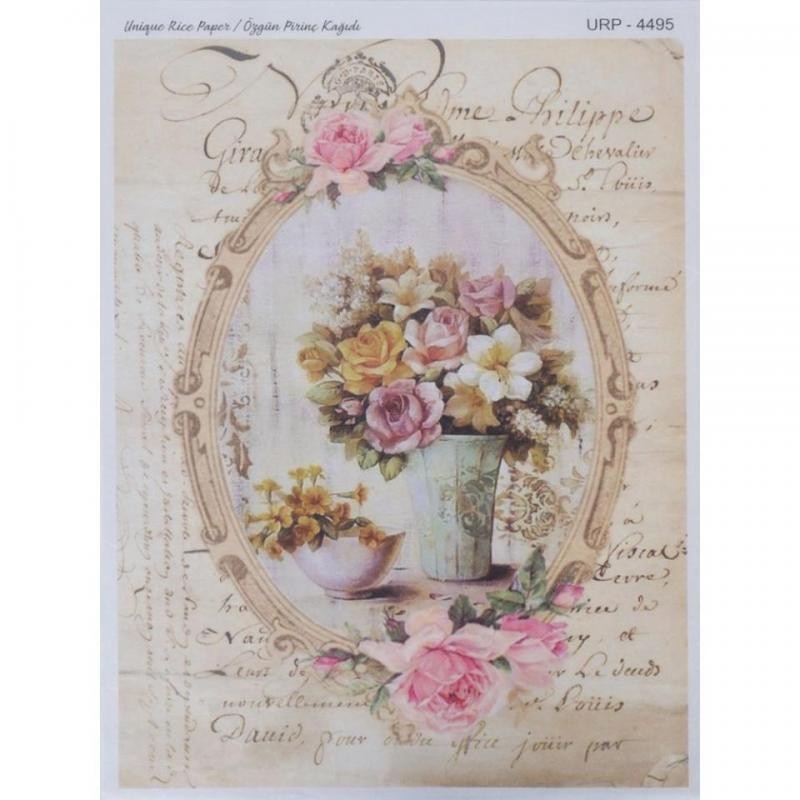 Es un papel muy ligero, semi-transparente y de color blanco natural. Tiene fibras irregulares y con distintos grosores y direcciones, que se aprecian a simple vista. El papel es fuerte y resistente, No se rompe en las manos. No se arruga Bonitos diseños con intensos colores, que no destiñen ni se degradan con un pegamento. Cada estampa hay que arrancarla de la hoja y no recortarla usando tijeras. El borde irregular del papel de arroz, es muy fácil de esconder. Se puede pegar fácilmente en todas las superficies, usadas en decoupage (vidrio, madera, dm, poliestireno, etc) La obra final se protege dando algunas capas de barniz, para un resultado óptimo