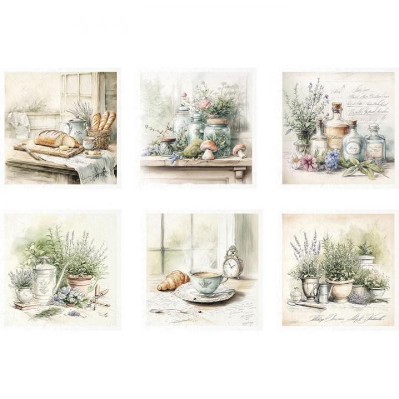 Set de 6 hojas de papel de arroz 14,8 x 14,8 cm (5.8”x5.8”) 30g/m2 – 6 gráficos coloridos diferentes en un solo paquete RSM192: cocina y hierbas