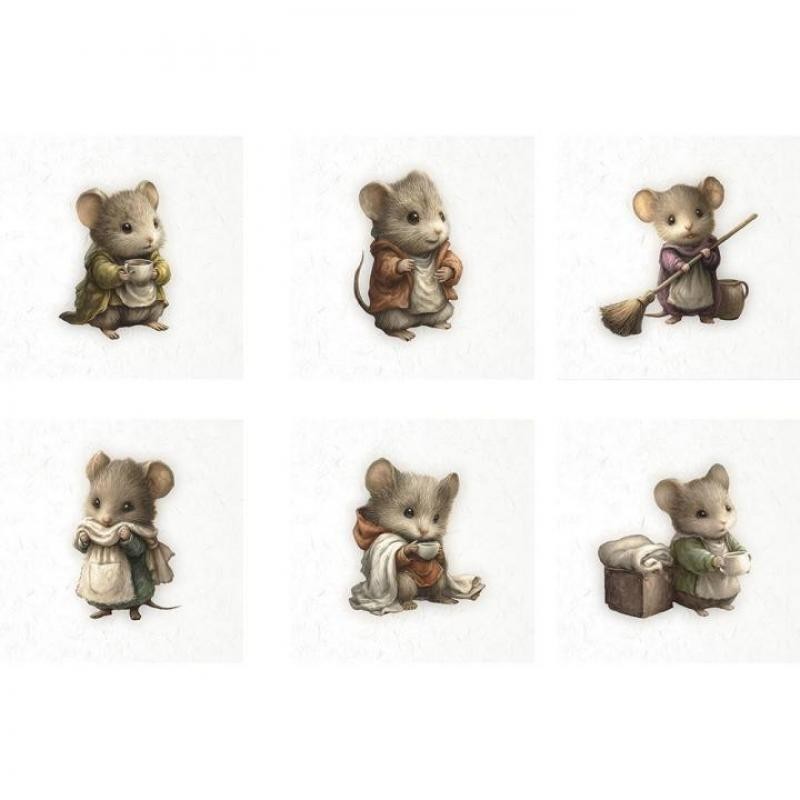 Set de 6 hojas de papel de arroz 14,8 x 14,8 cm (5.8”x5.8”) 30g/m2 – 6 gráficos coloridos diferentes en un solo paquete RSM220: ratones