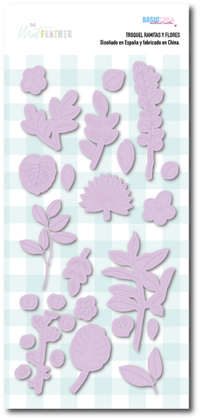 Paquete que contiene 26 troqueles con forma de ramas ,de la colección Fun Park The Mint Feather de Adela Silvestre.