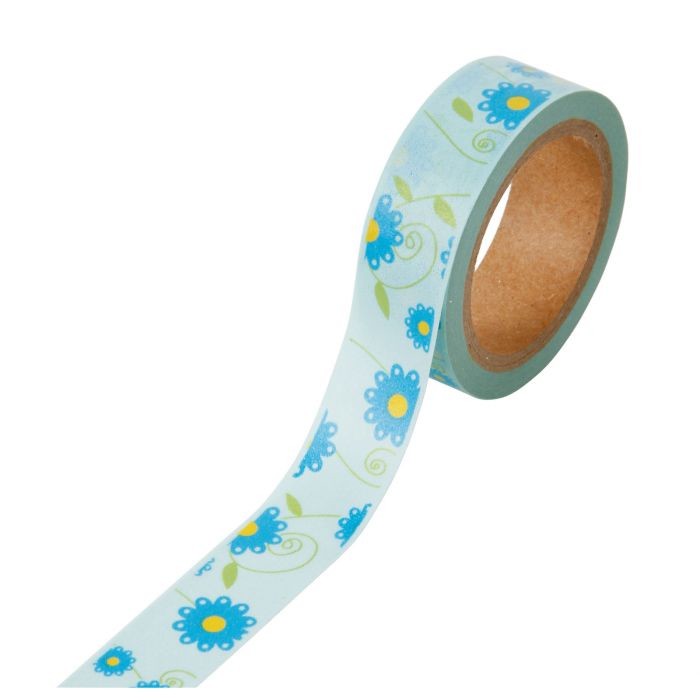 ROLLO DE 8 METROS DE WASHI TAPE CON FLORES AZUL Y AMARILLO DE 1,5 CM .